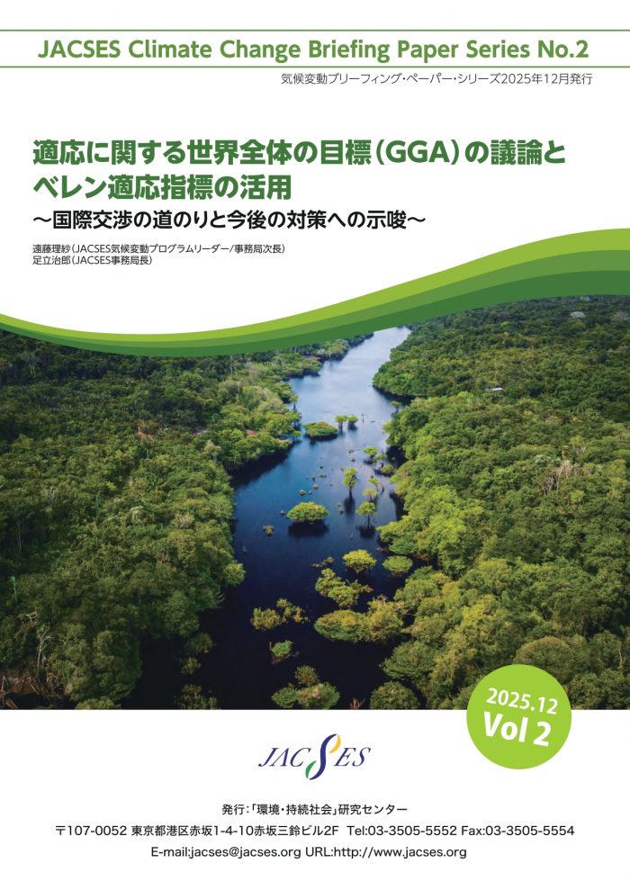 - 2025年12月:ブリーフィングペーパーNO.2「適応に関する世界全体の目標(GGA)の議論とベレン適応指標の活用~国際交渉の道のりと今後の対策への示唆~」